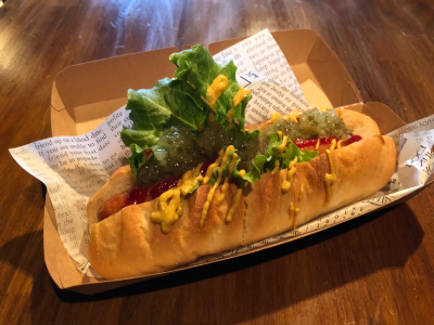 (レッドホットチリドッグ、エビフライドッグ、プレーンドッグ、石焼き芋、コーヒー)